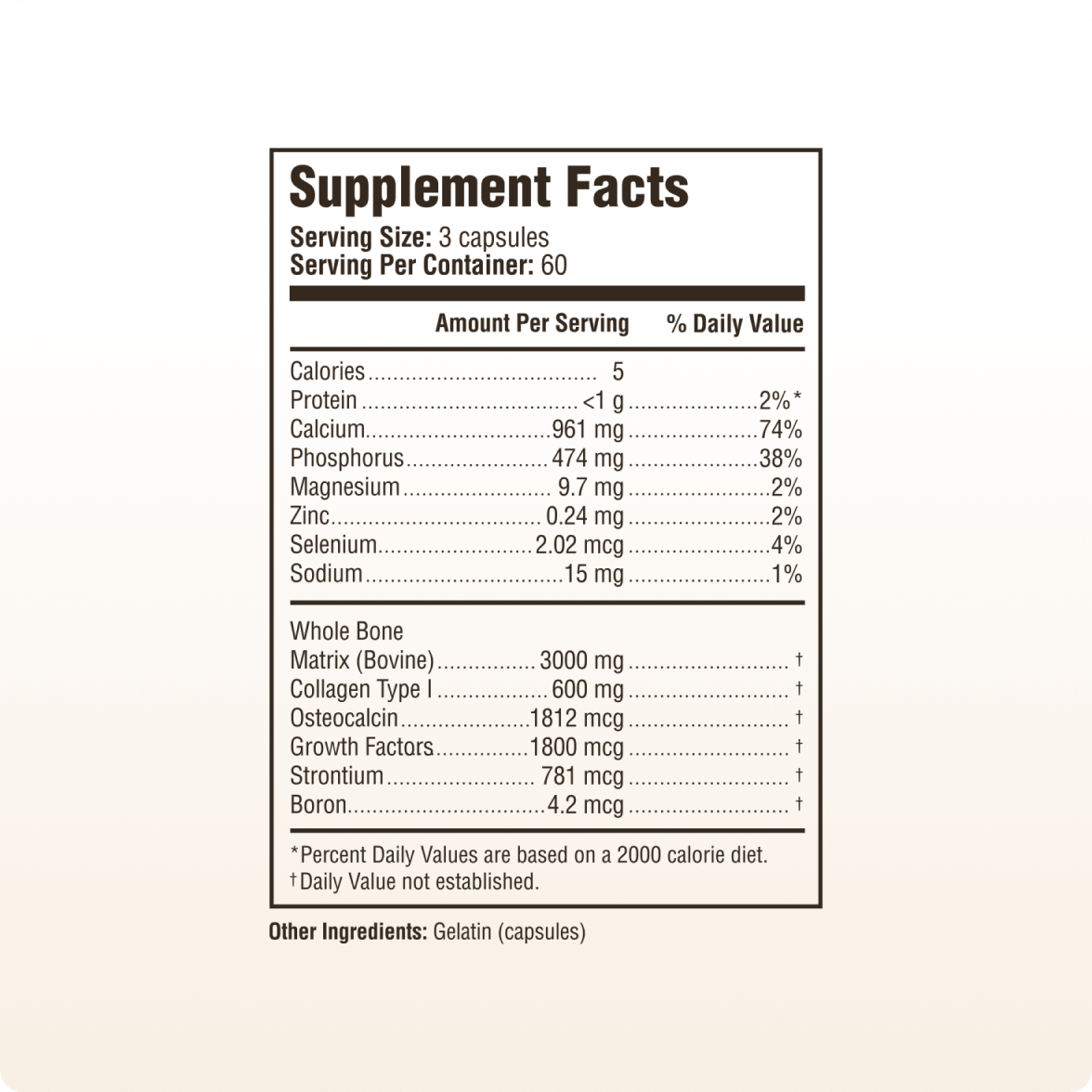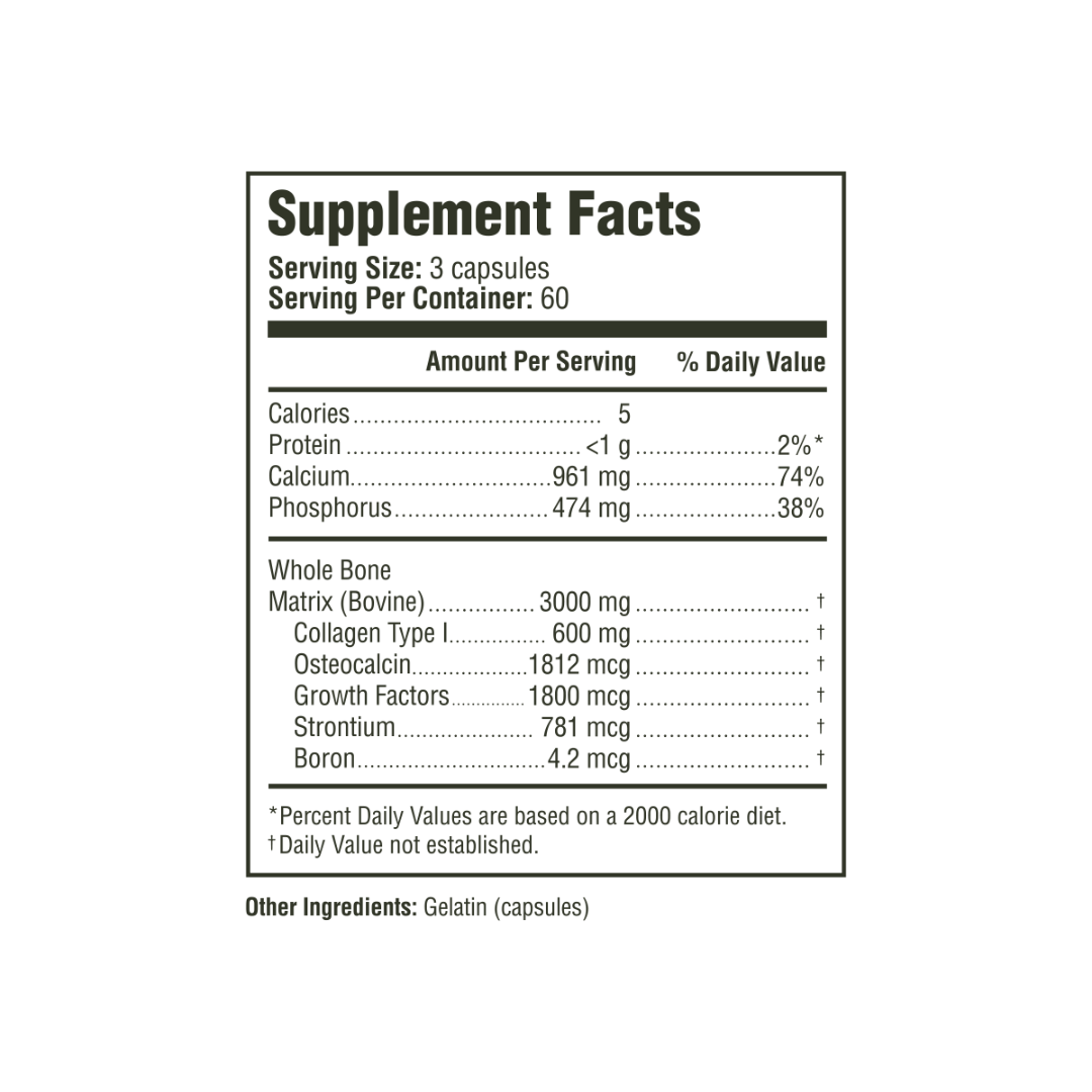 Bone Matrix provides a targeted source of whole bone designed to nourish, support mineralization, and help maintain overall bone strength and integrity.†
