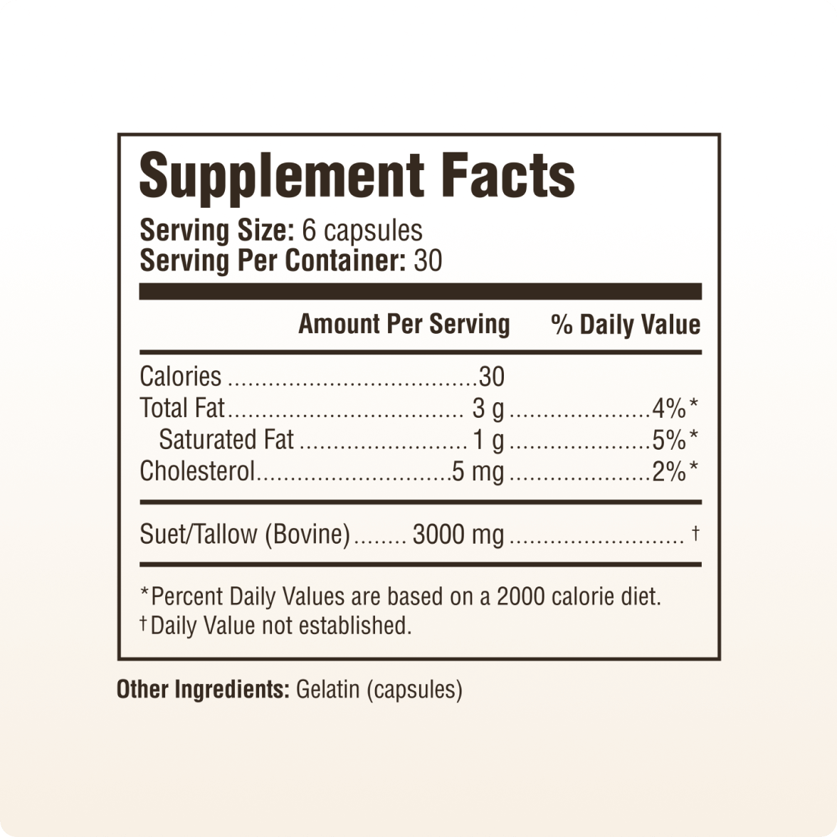 Firestarter is specifically formulated to support metabolic function, healthy weight management, and nutrient absorption by delivering bioavailable fats sourced from premium-quality, 100% grass-fed suet.†