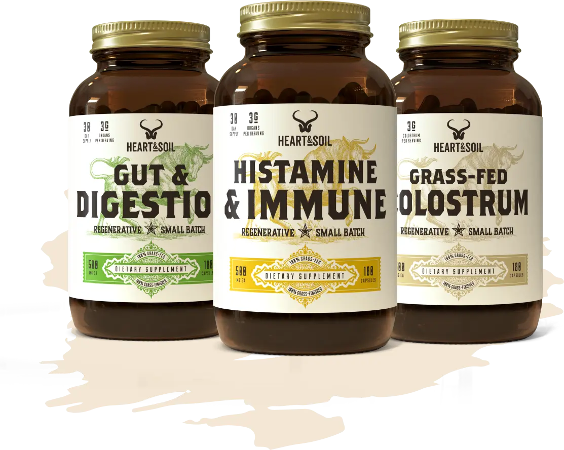 The combined power of Histamine & Immune, Bone Marrow & Liver, and Grass-Fed Colostrum includes vital and potent essential nutrients.