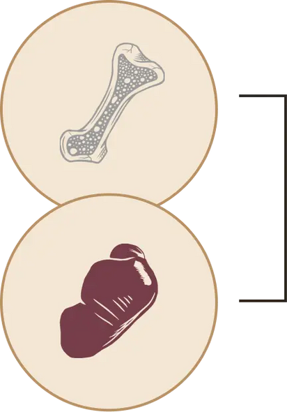 Bone marrow is vital for immune function and wound healing. The fat tissue in bone marrow contains adiponectin, a hormone that supports insulin sensitivity, reduces the risk of conditions such as diabetes and obesity-related cancers, and promotes metabolic and cardiovascular health. Additionally, bone marrow provides the compound glucosamine, which plays an important role in supporting cartilage, joints, and skin. Last but not least, it is a rich source of fatty acids to aid in boosting energy and mood as well as building bones.