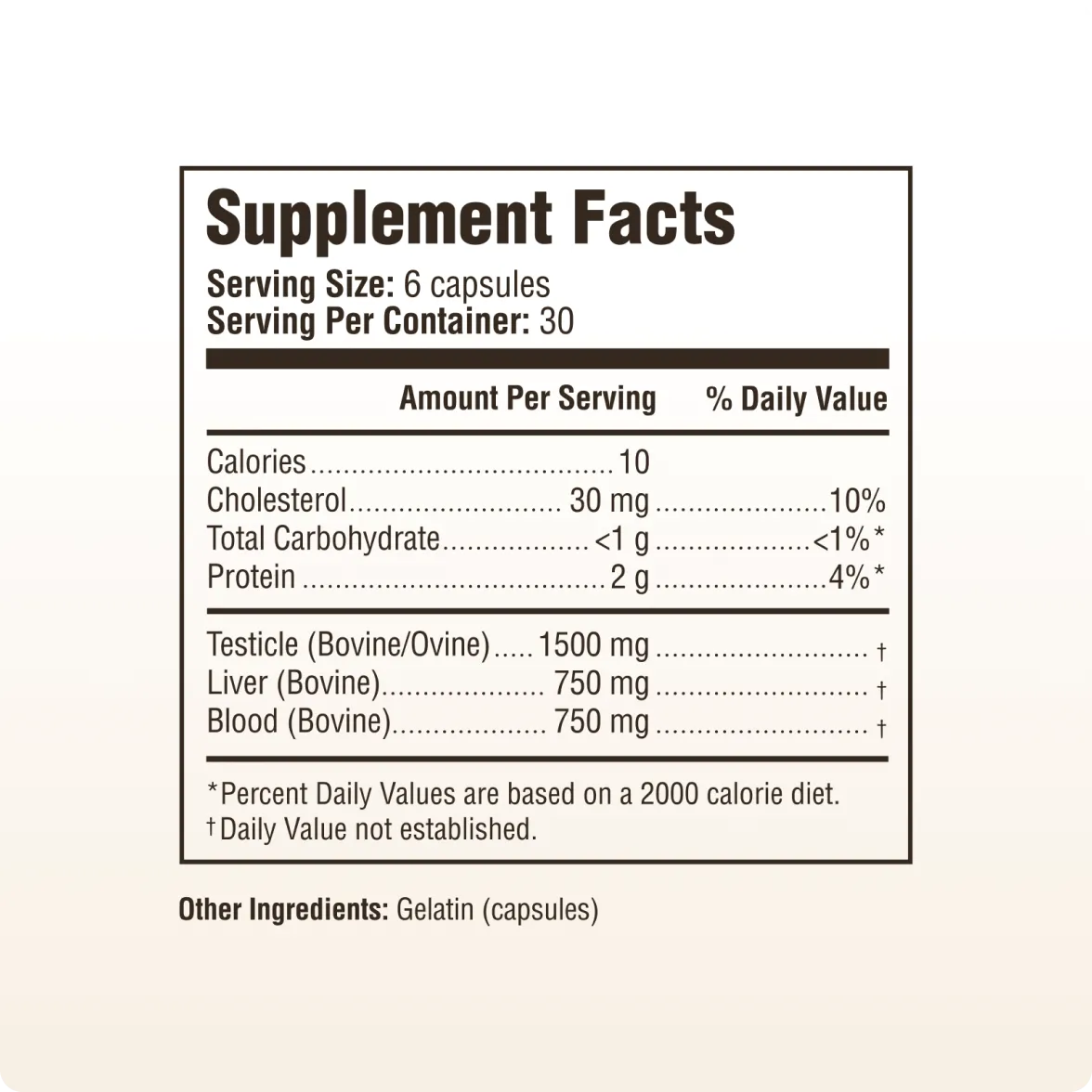 Take six capsules once daily. It’s that easy. If you’re new to taking organ supplements, start with 1-2 capsules daily for the first week before increasing by one capsule daily. Consistent long-term use produces the best results. Ask us if you need help.